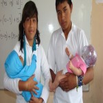 La Msc. Mirian Jurado, Alcaldesa de Mera junto al Ing. Luis Llallico, vice alcalde y la Sra. Concejala, Flora Sarabia exhiben los Bebes Simuladores