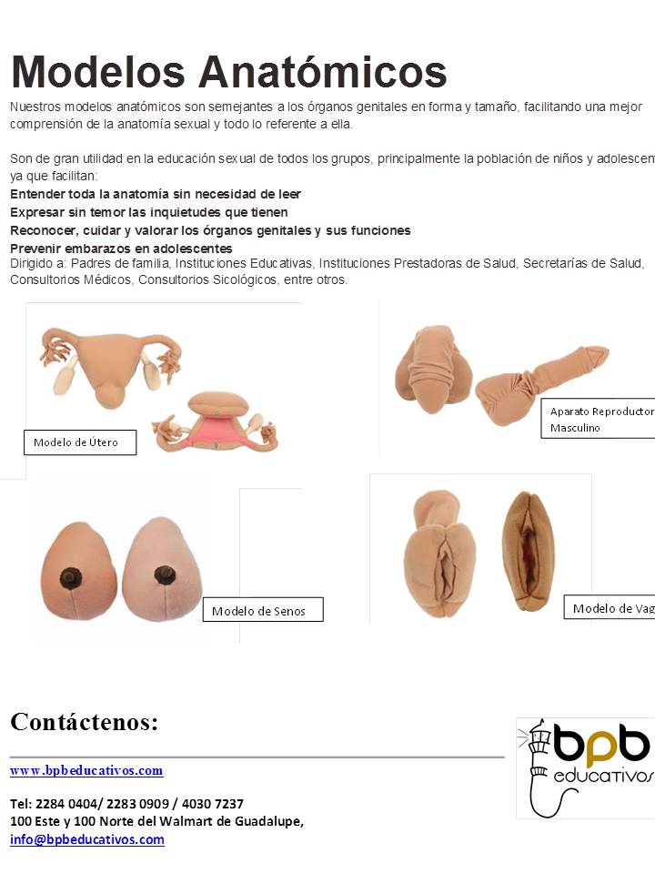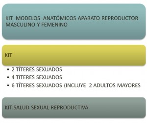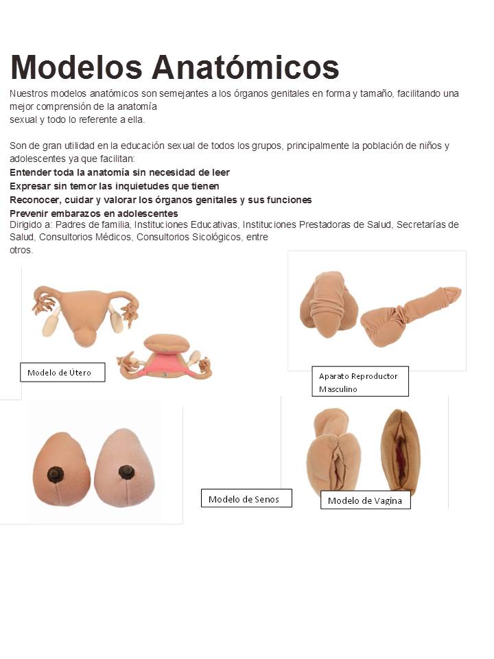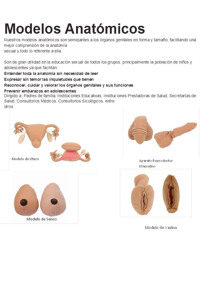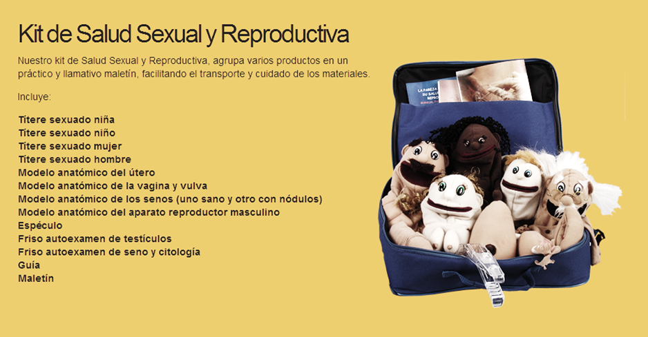 Títeres – kit salud sexual y reproductiva Consulte por las opciones: Familia de títeres Todos los títeres vienen con ropa, se muestran así para que se aprecie sus características sexuadas. Material confeccionado por profesionales en salud. Envíenos su pedido. Modelos Anatómicos